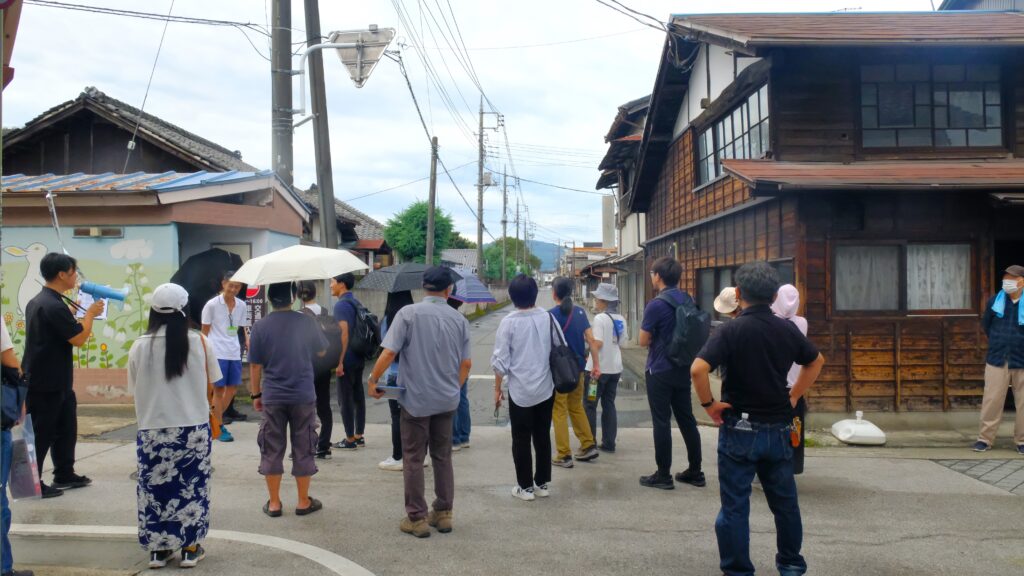 その後、妙義町へ移動。雄大な妙義山が目の前に広がり、町のどこにいても山の力強さを感じられました。妙義町では、古民家活用事例や空き家を見学。地域で暮らす移住者との交流を通して、古民家を事業として活かす工夫や地域との関わり方を学びました。