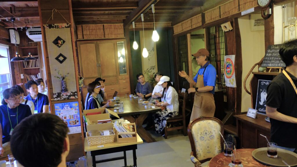古民家カフェ「桑庵」では、移住者の西尾さんから、古民家を見つけカフェとして改修するまでのストーリーを伺いました。改修の多くをDIYでやったことを伺い、古民家改修のリアルを肌で感じました。